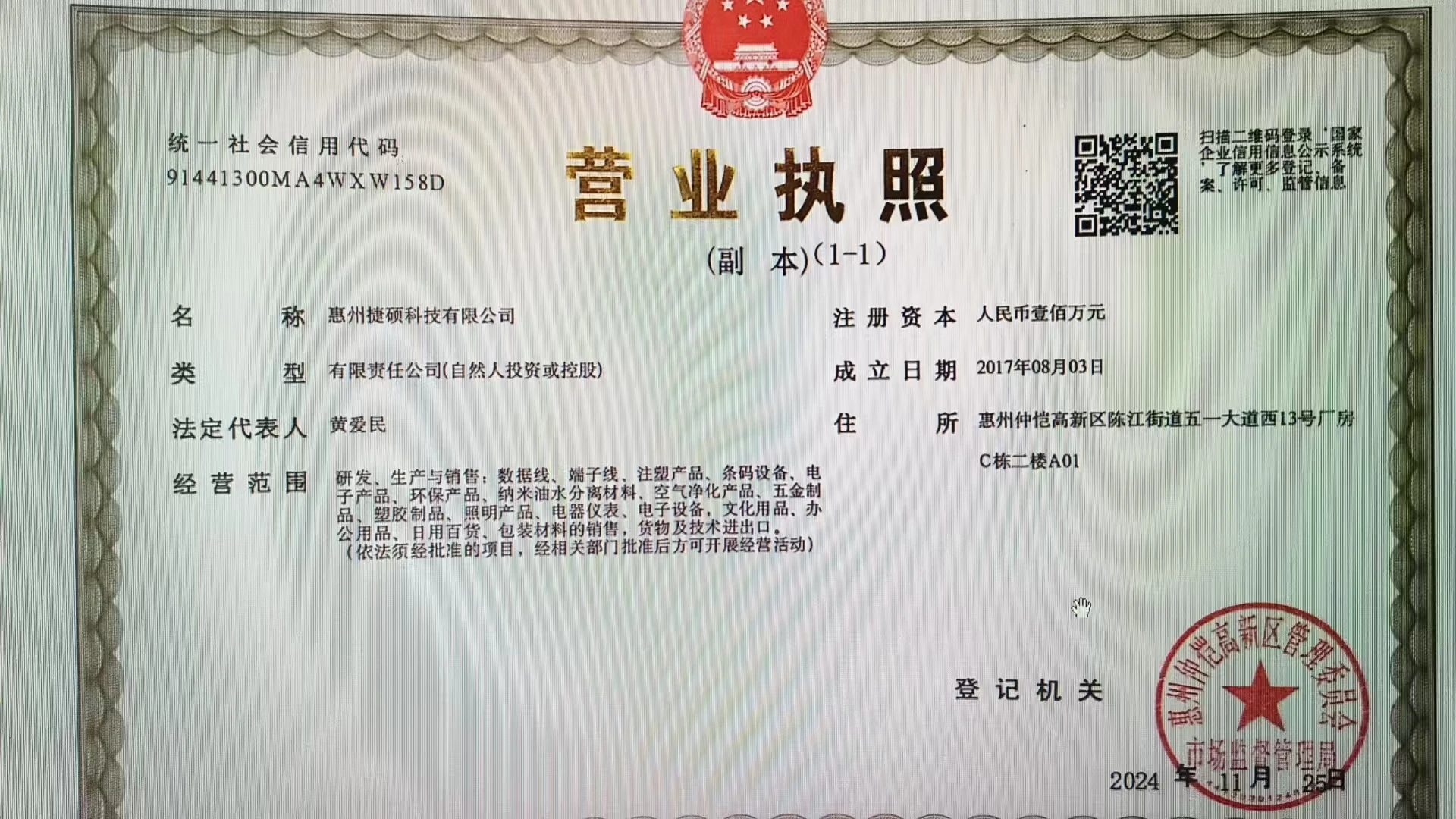 • Registered address : Room A01, 2nd Floor, Building C, No. 13, Wuyi Avenue West, Chenjiang Street, Zhongkai High-Tech Zone Huizhou Guangdong China